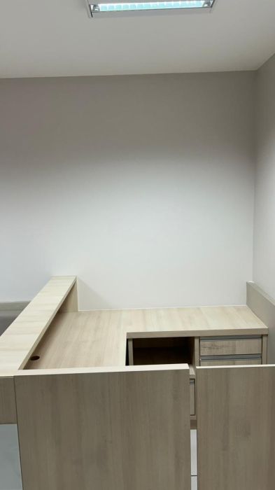Mesa de atendimento, cadeiras, armários e bancadas inclusos