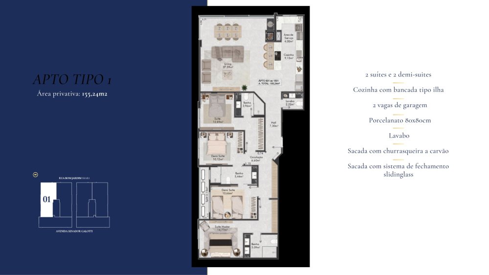 - Área Privativa: 155,68 m²