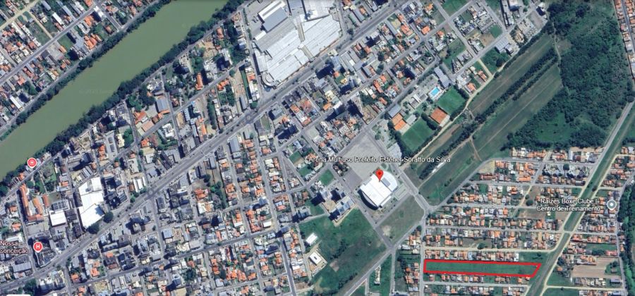 Terreno com 13.100 m², medindo 39 metros de frente por 336 metros de profundidade, localizado na Rua Alvin Rosendo Fogaça, no bairro Recife, ao lado da Arena Multiuso e próximo ao Shopping Farol.
