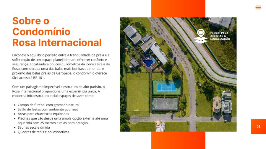 Segue um descritivo profissional e comercial, adequado para site de venda de imóveis, com foco em público de médio e alto padrão, alinhado ao Condomínio Rosa Internacional - Praia do Rosa, Garopaba/SC: