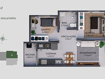 - Área Privativa: 42m²